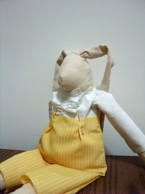 也做個多用途飾花:可作娃娃的帽花、胸花或手花,用別針別上就ok~ 黃色蕾絲圍一圈作底,中間是黃色絲帶蝴蝶結和金線蝴蝶結,最面層的玫瑰以金色絲帶摺成。